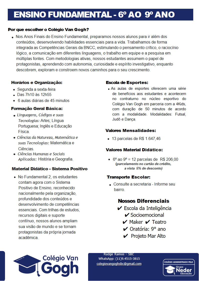 Nosso compromisso é formar alunos preparados para os desafios acadêmicos e para a vida. Cada ciclo de ensino é cuidadosamente estruturado para atender às necessidades dos estudantes, sempre alinhado à BNCC e enriquecido com práticas inovadoras que desenvolvem habilidades cognitivas, socioemocionais e culturais.